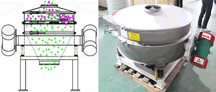 直排篩也叫直排式振動篩,可以選擇一臺振動電機和二臺振動電機,分單振源和雙振源兩種,主要用于粉體、顆粒料生產(chǎn)線工藝流程中的物料除雜,篩松作用。