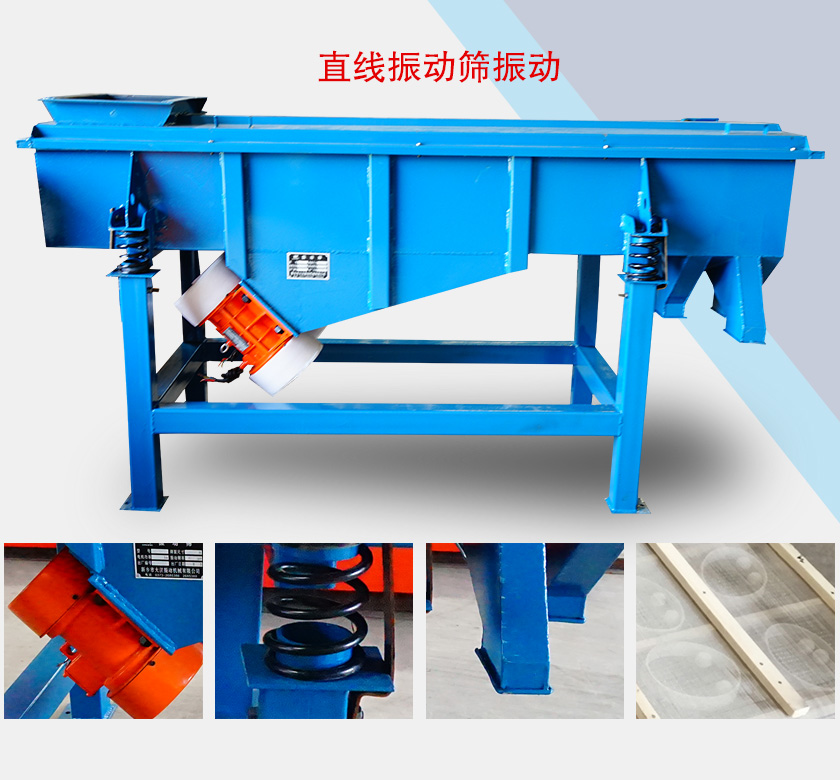 直線振動(dòng)篩的工作原理主要為雙振動(dòng)電機(jī)進(jìn)行驅(qū)動(dòng),利用振動(dòng)電機(jī)的激振力使物料在篩面上進(jìn)行直線運(yùn)動(dòng),達(dá)到篩分效果。