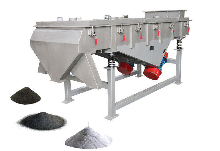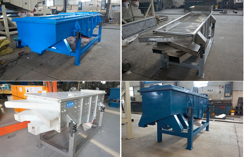 直線振動篩簡稱直線篩,其主要功能是分級、過濾和除雜,以兩臺振動電機(jī)為振動源,使物料在篩面上直線跳躍,物料均勻進(jìn)入篩面,各種規(guī)格的物料通過多層矩形篩網(wǎng)產(chǎn)生并從各個(gè)出料口排出。