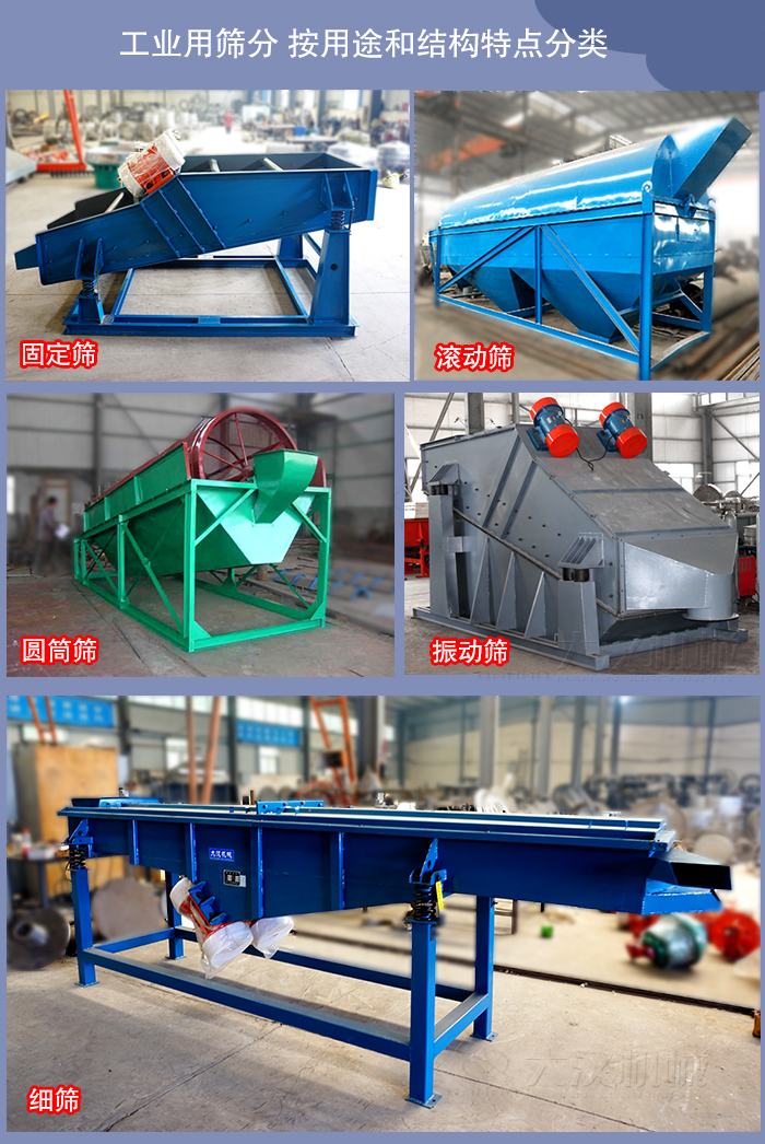 工業(yè)用篩分機 按用途和結(jié)構特點大致可分為: